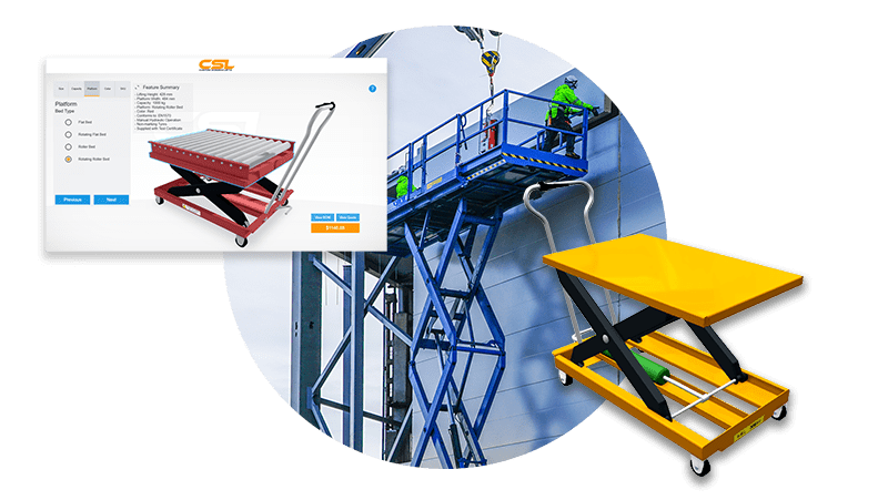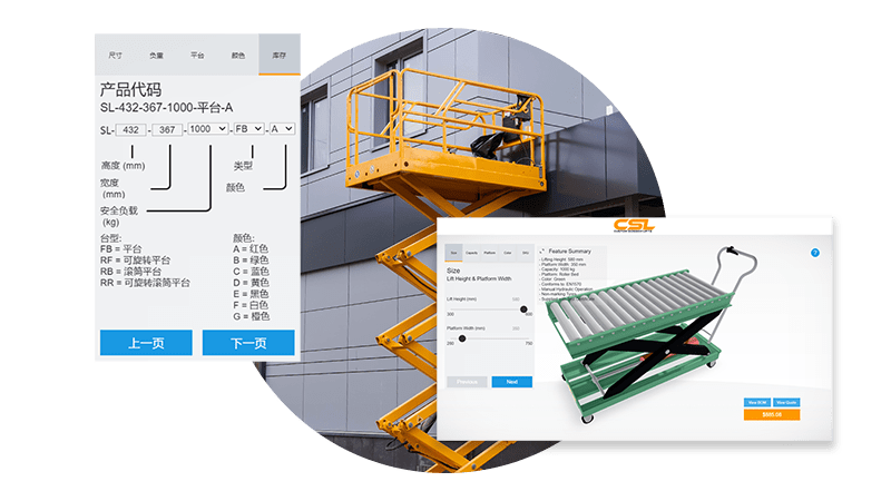 The scissor lift demo shows how interactive 3D configuration can be used to help users visualize options and understand how products function.