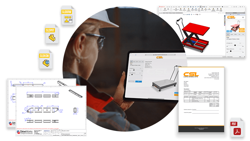 - HTML BOM and quote documents are created in real-time as users configure.